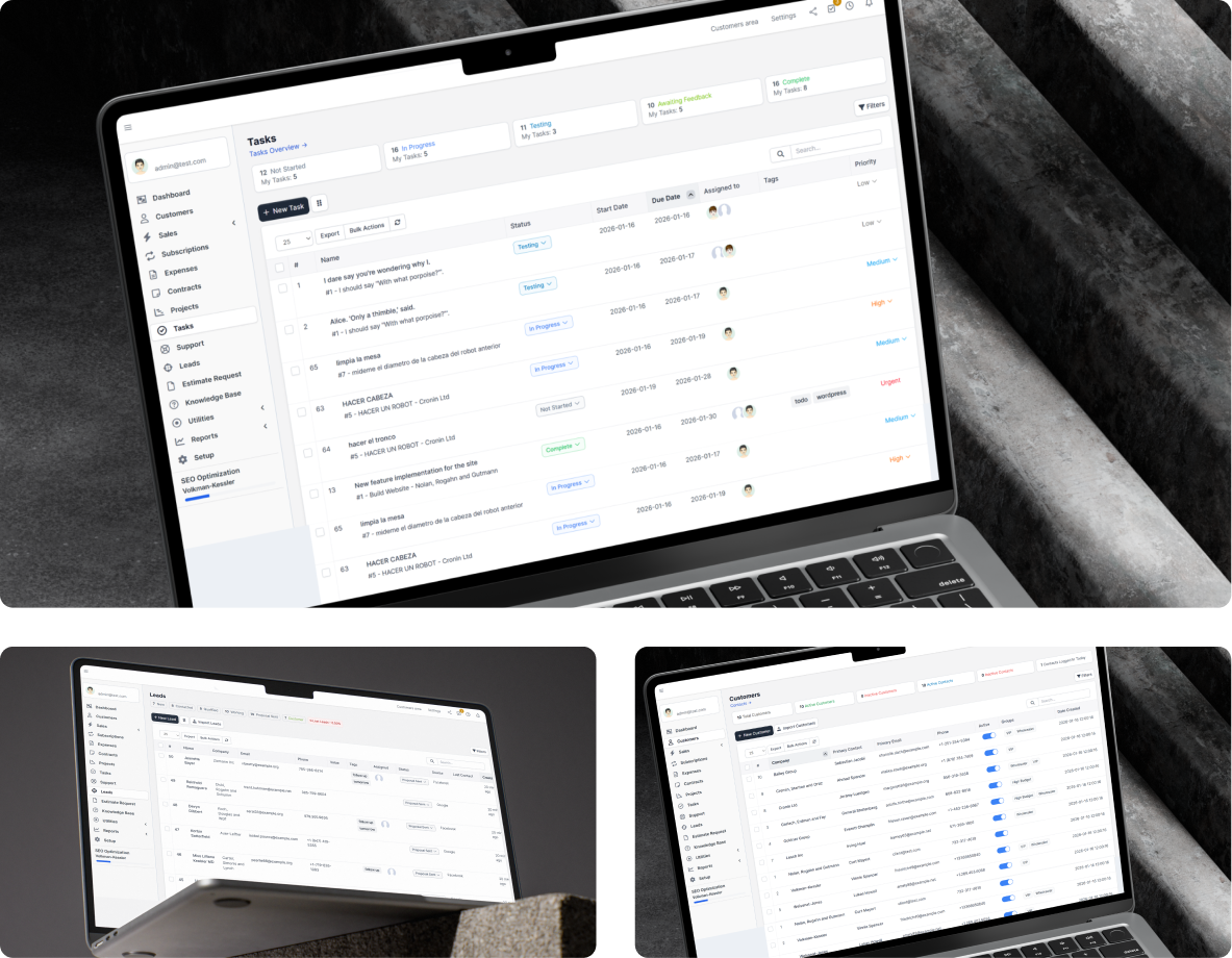 Perfex CRM هو نظام إدارة أعمال مرن وقوي تم تصميمه لمساعدة المؤسسات السعودية على التحكم في خط أنابيب المبيعات والتواصل مع العملاء والمشاريع والفواتير والدعم – كل ذلك من منصة واحدة سهلة الاستخدام. إنه مثالي للشركات القائمة على الخدمات التي تحتاج إلى هيكل ورؤية وأتمتة بدون تعقيد.