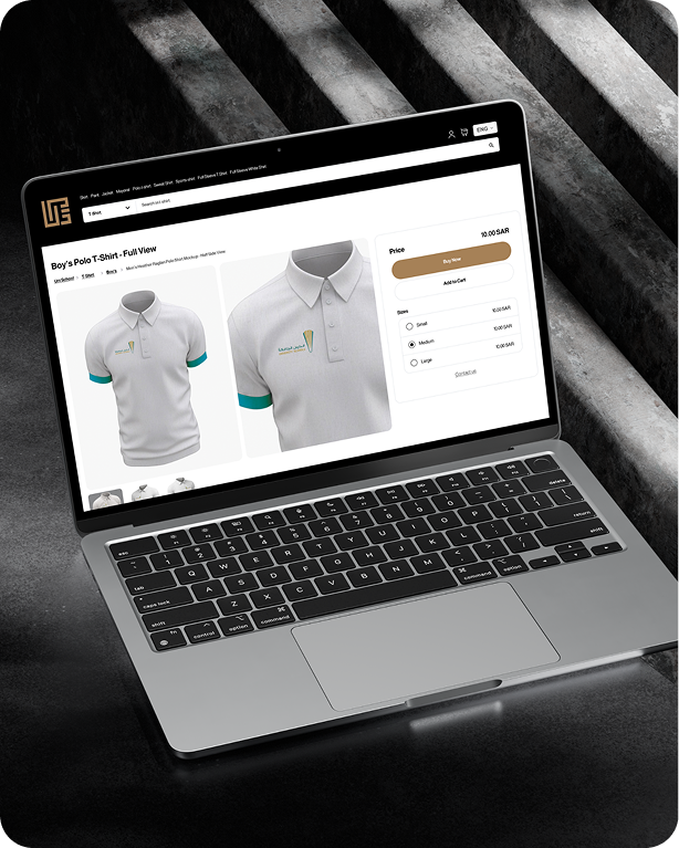 نعم – يدعم تصفح الزي الرسمي حسب الفئة ، واختيار الأحجام وخيارات التخصيص ، وإضافة المنتجات إلى سلة التسوق.